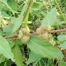 刺蒴麻,为半灌木,高约1米,全株稍被毛,茎或分枝,下部的叶菱状宽卵形或宽卵形。