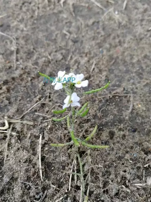 一或二年生草本。茎基部多分枝,铺散或斜升,高14—23cm,有分枝毛和单毛。叶矩圆形或矩圆状倒卵形,长0.5—3cm,宽1—5mm,全缘或具疏齿,下部叶柄较长,基生叶较大,莲座状。总状花序密集,果期伸长,萼片矩圆形,背面被分枝毛和单毛,花冠十字形,花瓣4,白色,后变粉红色,先端钝圆,基部渐狭成爪。雄蕊6,4强。长角果条形,长1—2cm,或弯曲,先端具短喙,有毛。