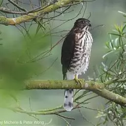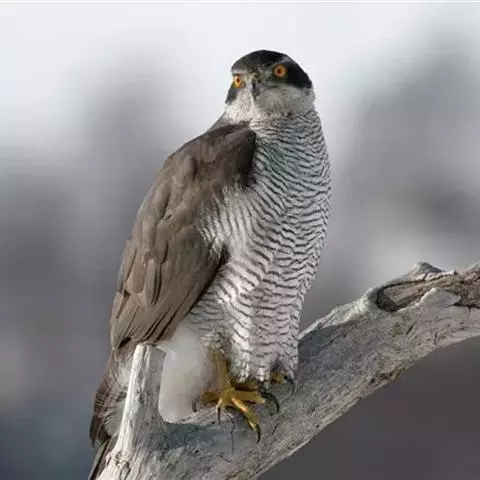 松雀鹰又名雀鹰、松子鹰,是鹰形目鹰科鹰属小型猛禽。雄鸟头顶至后颈黑灰色,眼先白色,…