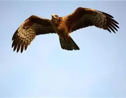 苍鹰是中小型猛禽。体长可达60厘米,翼展约1.3米。头顶、枕和头侧黑褐色,枕部有白羽尖,…