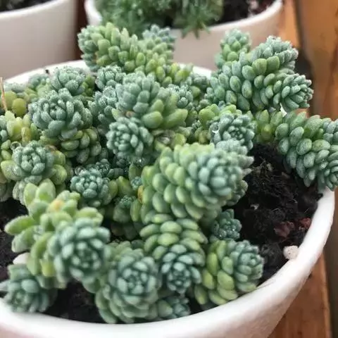 白霜,景天科景天属小型多肉植物,叶子绿色肉质会有白霜覆在表面。