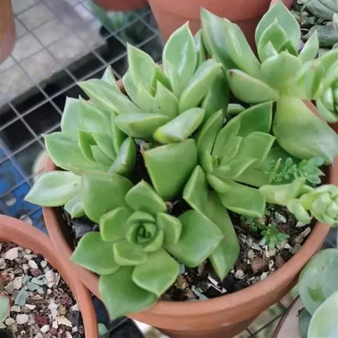 立田锦多肉,易群生的景天科拟石莲花属和厚叶草属杂交多肉品种。茎直立,株高30厘米以内,其叶排列呈莲…