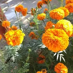 万寿菊是菊科万寿菊属一年生草本植物,别名孔雀菊、缎子花、臭菊花、西番菊、红黄草、小万寿菊、臭芙蓉、孔雀草。万寿菊茎近基部分枝。叶羽状分裂,长5-10厘米,宽4-8厘米,裂片长椭圆形或披针形,具锐齿,上部叶裂片齿端有长细芒,叶缘有少数腺体。头状花序单生,径5-8厘米,花序梗顶端棍棒状。总苞长1.8-2厘米,径1-1.5厘米,杯状,顶端具尖齿。舌状花黄或暗橙黄色,长2.9厘米,舌片倒卵形,长1.4厘米,基部成长爪,先端微弯缺。管状花花冠黄色,长约9毫米,冠檐5齿裂。瘦果线形,被微毛;冠毛有1-2长芒和2-3短而钝鳞片。花期7-9月。万寿菊中国各地均有栽培,在广东和云南南部、东南部已归化,国外原产墨西哥。万寿菊对土壤要求不严,但以肥沃疏松排水良好的土壤为好。耐移栽,种子发芽适温21-24℃,植株生长适合温度为20-29℃。喜温暖和阳光充足的环境,不