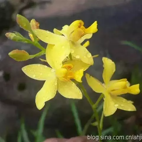 苞舌兰:假鳞茎扁球形,通常粗1-2.5厘米,被革质鳞片状鞘,顶生1-3枚叶。叶带状或狭披针形,…