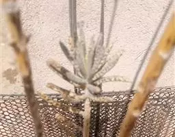 魁伟玉原产南非,是一种大戟科的多年生肉质植物,植株具粗圆筒形肉质茎,有10条以上的突出棱,…