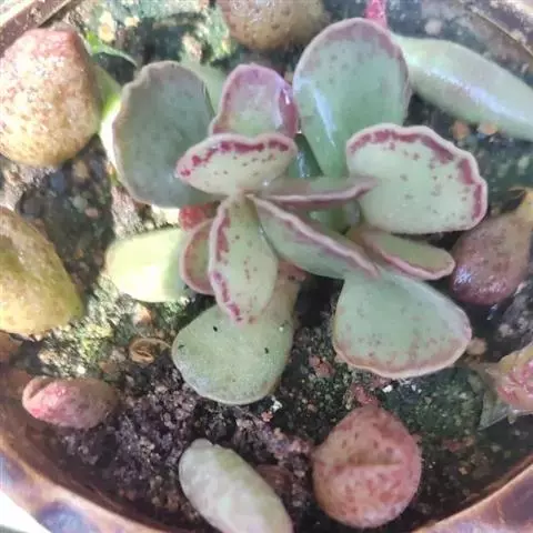 趣蝶莲,为景天科珈蓝菜属的植物。多年生常绿多肉草本。茎短;叶对生,卵圆形,先端圆,基部渐狭,近无柄,…
