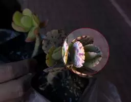 江户紫,景天科伽蓝菜属草本植物,是多年生草本花卉。花白色,但栽培中很少能见到花,常作观叶植物栽培。…