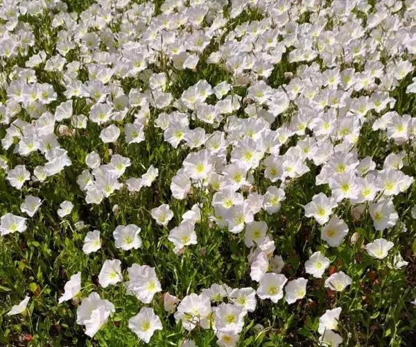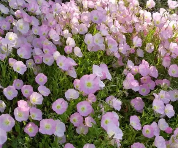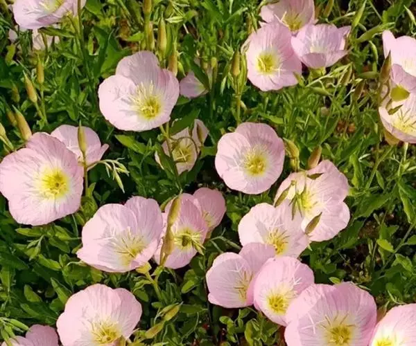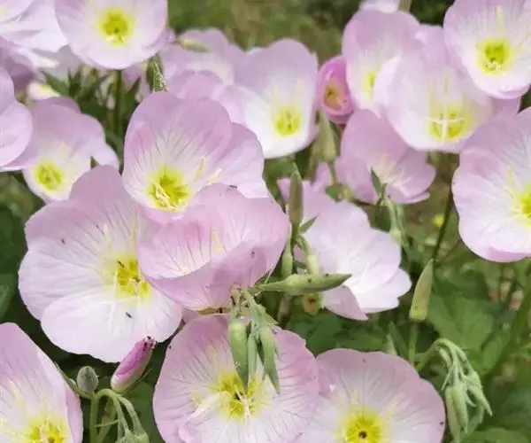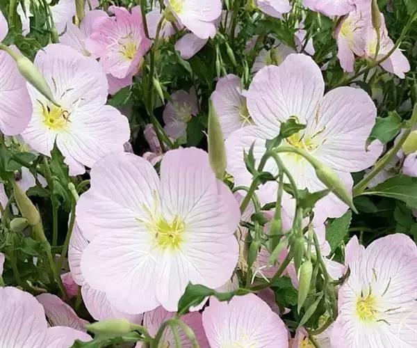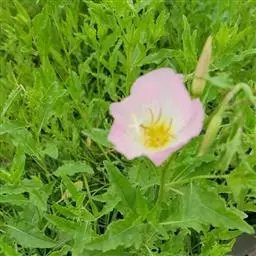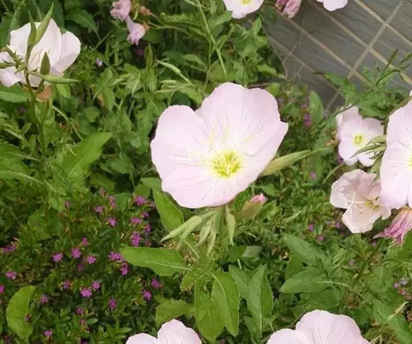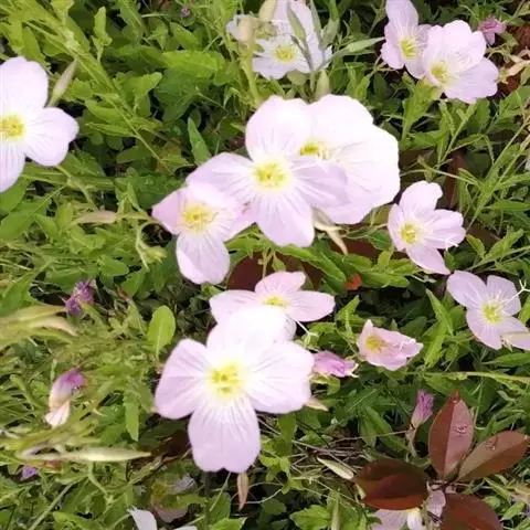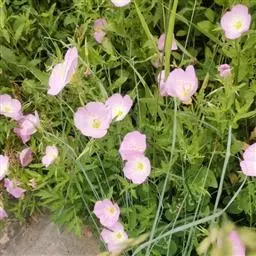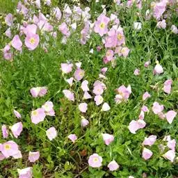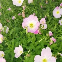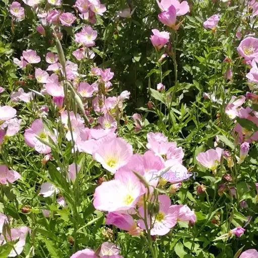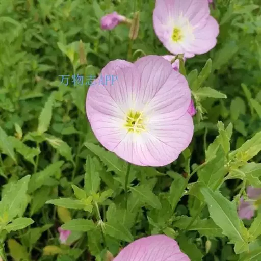 美丽月见草,别名:待霄草、粉晚樱草、粉花月见草,拉丁文名:Oenothera speciosa,英文名:evening primrose(晚樱草),是月见草的一种,柳叶菜科、月见草属多年生草本,具粗大主根(粗达1.5厘米);茎常丛生,因它在傍晚见月开花,且天亮即调谢,故名月见草,但美丽月见草白天也会开放,花朵如杯盏状,引来粉蝶翩翩飞舞,甚为美丽。丛生状种植,营造出别样的自然园林风情。