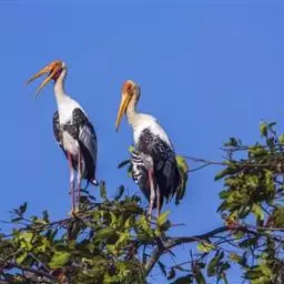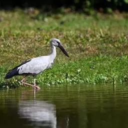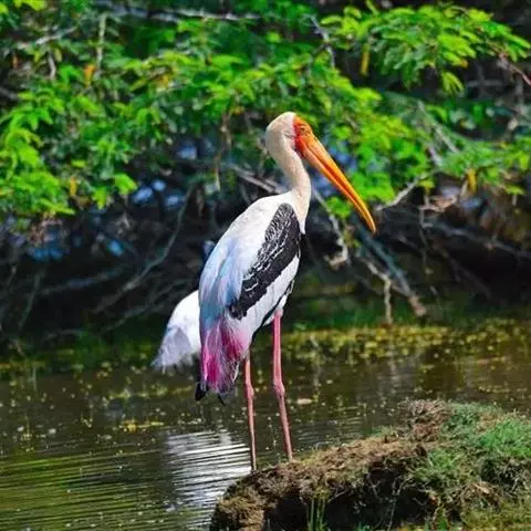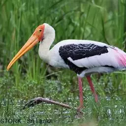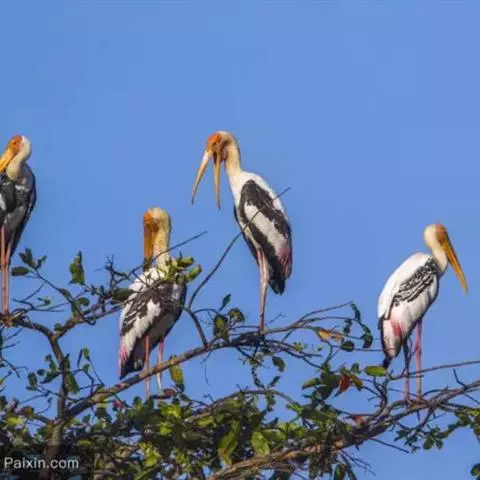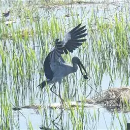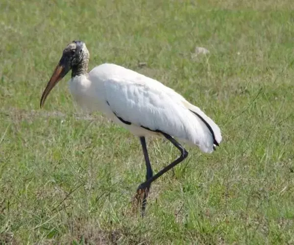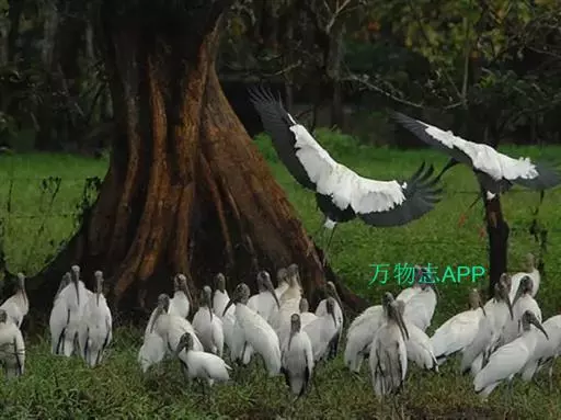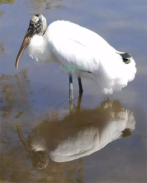 黑头鹮鹳(学名:Mycteria americana):大型涉禽。体长102厘米,翼展150-175厘米,体重2050-2640克。寿命10年。 嘴长而粗壮,飞时头颈伸直。雌雄相似。成鸟上体白色,下体白色。翼下覆羽有黑色横带,具绿色光泽和白色羽缘。虹膜淡黄色;嘴橙黄色;基部红色;脚灰黑色,趾粉红色。