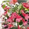 金红花为多年生球根(肉质)草本植物。全株高约35~40厘米,茎黄绿色。略透明、呈四棱。叶对生,长椭圆状披针形。长15~23厘米,宽8~10厘米;叶质柔软,略有光泽;叶缘呈锯齿状;叶面有短的糙毛。深棕绿色;叶背紫红色。叶脉网状,主脉分明、突出,黄绿色。茎叶多汁。脆嫩易折。当生长至第2~4对叶时,就开始开花。直至休眠前结束。伞形花序,腋生。长8~10厘米,有花10余朵。粤片五枚,合生成五棱状杯形,顶端急尖,三齿状,胭脂红色。花长筒状,花瓣五裂,半圆形。长2.5~3厘米。朵朵余花,簇拥枝头,恰似一群傲傲待哺的小雀。令人喜滋滋,乐融融的。花瓣内侧有数条放射状的红色条纹。犹如霞光四射。壮丽辉煌。花瓣背后着生有细长的绒毛,更让人感到它俏丽可爱。株高矮适中,金花、红警、红叶,是本品的最大特点和最佳观赏处,且花开不绝。观赏期可长达6~9个月,为阳台、窗台和室内案头摆设的理想盆花。本种有休眠性。12月底至翌年3月上旬(在海南)为休眠期。3月初由地下扁球根萌芽,大球一次可发4-5棵苗。少则一棵。