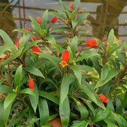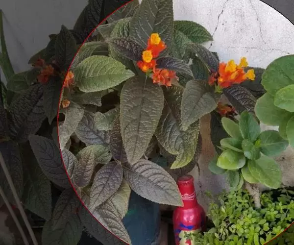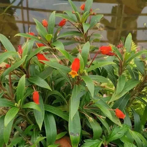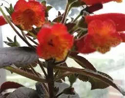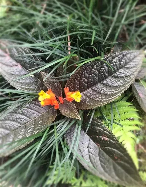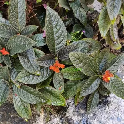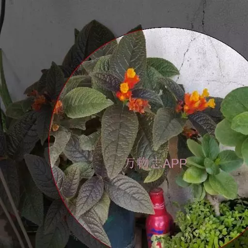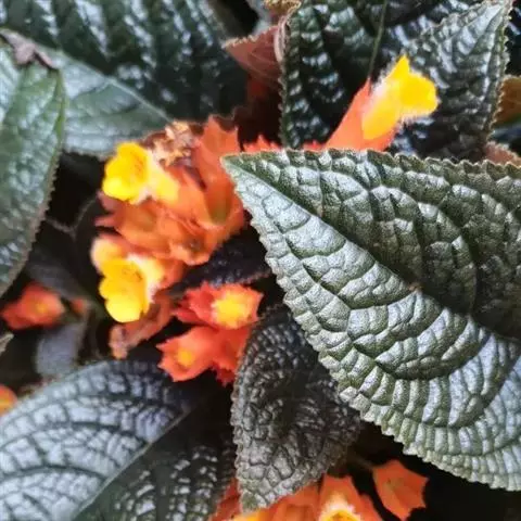 金红花为苦苣苔科多年生常绿草本植物,球根花卉。株高15~25cm 金红花 ;叶对生,阔披针形,叶面褐绿而有光泽,叶背紫褐色,叶缘有锯齿,叶脉明显而有细皱;花顶生或叶腋出,小花筒状,橙黄色。
