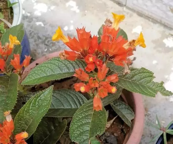 金红花为苦苣苔科多年生球根植物,花橙黄色,是一种优良的花叶并赏的花卉。