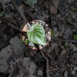 茎直立,成年植株有地下块茎,茎四棱形,黄绿色,略透明。茎叶多肉,盆栽时高可达30~40厘米。叶对生,长椭圆状披针形,叶片较大,长10~20厘米,宽5~10厘米,边缘有圆锯齿,叶面长有密生粗糙的毛,多皱折,红绿色,有光泽;叶背紫红色。