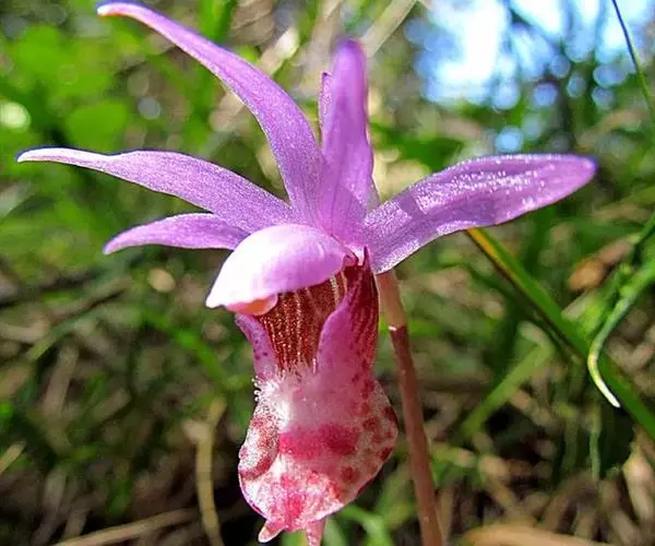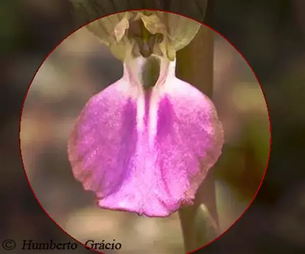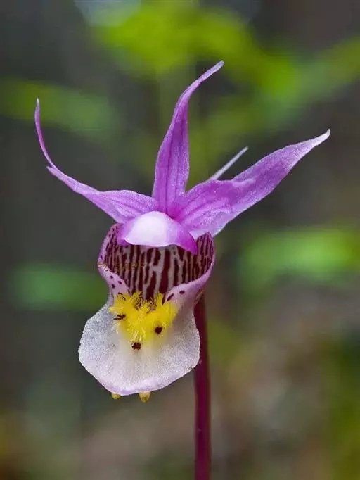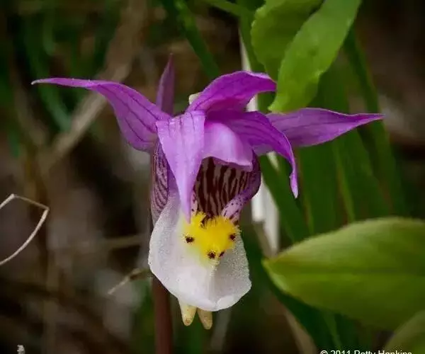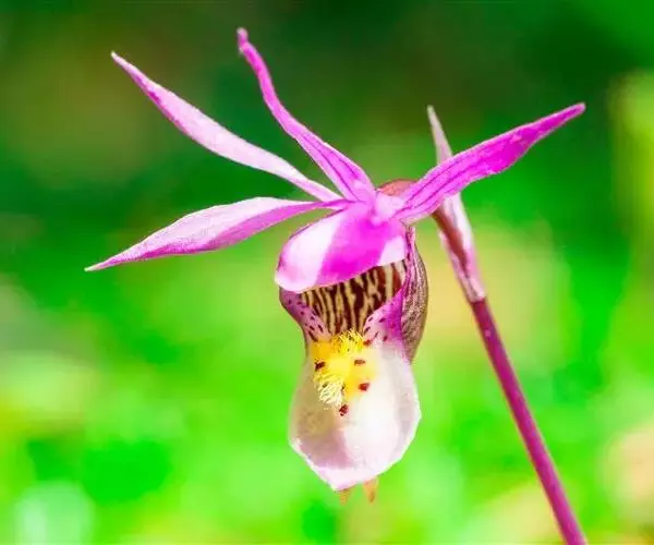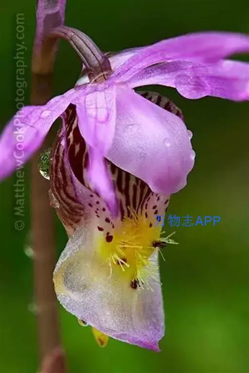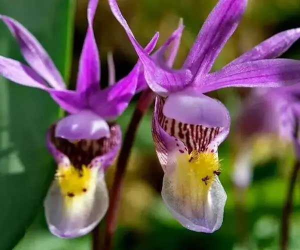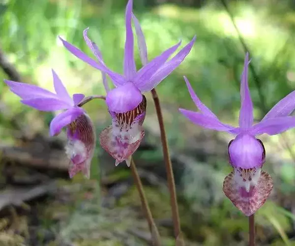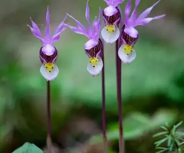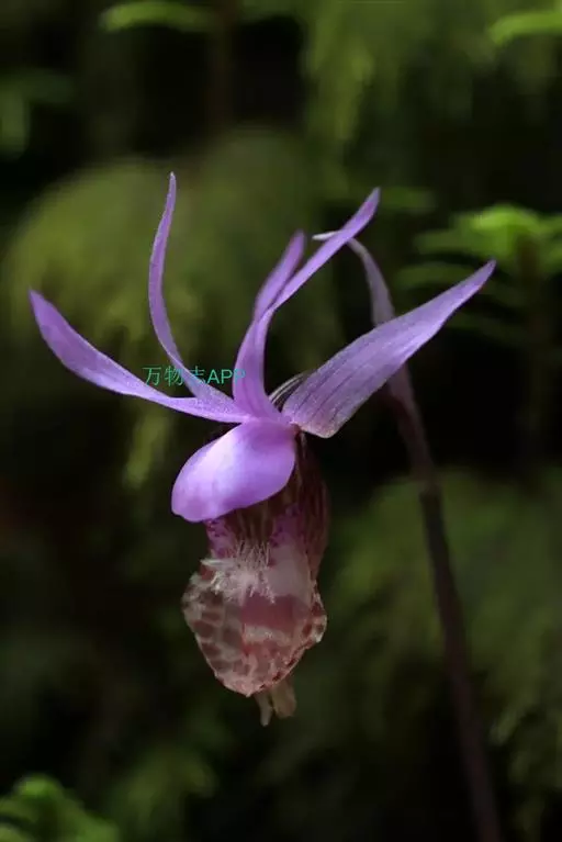 布袋兰(学名:Calypso bulbosa (L.) Oakes):假鳞茎近椭圆形、狭长圆形或近圆筒状,有节,常有细长的根状茎。叶1枚,卵形或卵状椭圆形。花葶长10-12厘米,明显长于叶,中下部有2-3枚筒状鞘;花单朵,直径3-4厘米;萼片与花瓣相似,向后伸展,线状披针形;唇瓣扁囊状(上下压扁),3裂。花期4-6月。