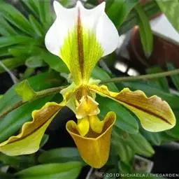 上盆(或翻盆)时间一般在春季3-4月或秋季10-11月。花盆以口小、盆深、底孔大的为佳。新从山上挖来的野生苗需理植于瓦盆(泥盆)中,这样兰花泥易干,通气性好.容易发根;2-3年后方可换人紫砂盆或瓷盆。兰花种植(在盆中)的方法与一般花卉不同,尤其是名种兰花,翻种移盆必须洗根。方法足将根浸入清水中,用旧牙刷或毛笔轻轻洗刷,切勿用力过大伤根;用剪刀将残叶、黄叶、断裂根、发黑腐烂根剪去,注意勿伤幼芽。然后将处理好的植株放在阴凉通风处晾干,待根部发白并显细小皱纹柔软时,再植入盆中。 方法一 准备好兰盆及植料后,将兰株倒拿(根在上,叶在下)放于水龙头下以慢水冲洗,但水压切忌过强,以免伤兰根及叶子。用拇指和食指抓住兰头,小指抵住盆缘,用竹筷将根固定,当放入盆内时,尽量不要让根接触到盆壁。将豆粒大的混合石砾倒入盆底至三分之一处。然后倒入中粒植料至五分之四处,填实和尽量不要留下空间。将竹筷拔出,并摇实盆中植料。填实植料后,再用大粒植料埴入至距盆缘1.5厘米处。最后再倒入豆粒大植料,以将假鳞茎全部埋入土中为度,然后充分摇实。用压土工具轻压植料,并将表面弄平。种植完毕后,植料在盆中以中央稍高为好。 方法二 要注意盆底排水,泥盆用碎瓦填,紫砂盆必须用穿孔尼龙纱罩住盆底。植前先在盆内铺上粗石子,占盆深2/5左右,粗石培养土,厚3-5厘米,然后放入兰草。上盆时注意根部要自展,不能卷曲。种植名种兰草时一定要将老草靠边,新草放在中心,这样再发新草就有余地。种植时,左手握持兰草,右手加泥(要防止泥土贯入叶心),再将兰株稍稍提起,使根自然舒展。然后边加土边摇盆,使土与根紧密接触。再用手将茎部四周的泥土按紧,最后使盆面略显馒头状(即中间四周略低)。上面铺覆一层青苔或细石子,这样盆土不易板结并可减少水分蒸发。上完盆,立即浇水。第一次浇水水量要充足。最后将兰盆放置阴处。一个月内不宜直接晒太阳,并控制浇水,不宜太湿,以后放置地点宣选择在半阴半阳、通风透气,早上照到太阳的地方。