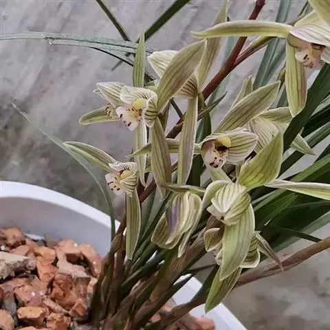 建兰素花,绿白色,清香,一枝开花5至12朵。叶色钢青,细而挺拔,有铮铮铁骨之相,所以叫铁骨素。在日…
