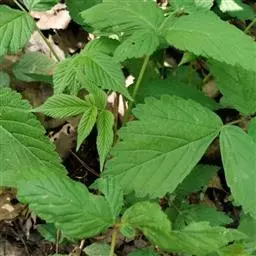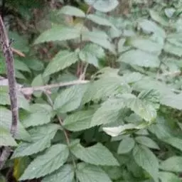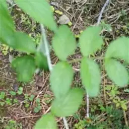 小叶常3枚,稀于不孕枝上具5小叶,长4-10厘米,宽2.5-5(7)厘米,顶端急尖至短渐尖, 顶生小叶卵形或近圆形,稀卵状披针形,基部圆形至浅心形,边缘常3裂或缺刻状浅裂,侧 生小叶斜卵状披针形或斜椭圆形,基部楔形至圆形,上面疏生平贴柔毛或几无毛,下面密 被灰白色绒毛,沿叶脉混生柔毛,边缘有不整齐粗锯齿或缺刻状粗重锯齿;叶柄长2-4厘 米,顶生小叶柄长1-2厘米,侧生小叶近无柄,与叶轴均密被绒毛状柔毛;托叶线形,被柔毛。