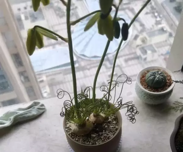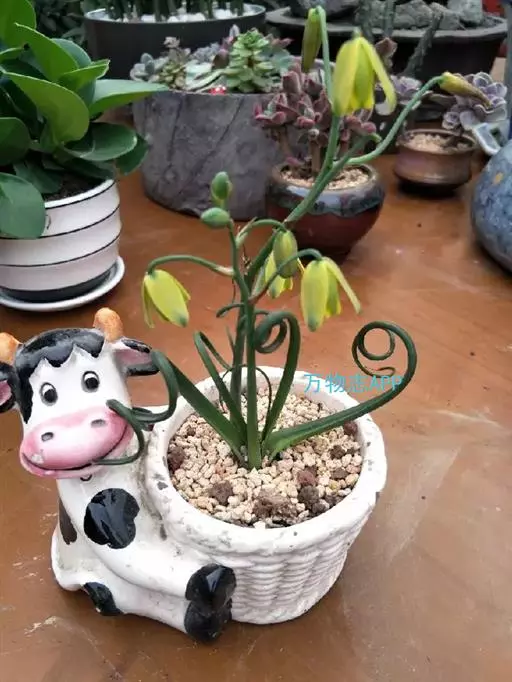 弹簧草形态独特,鳞茎古朴,其线条流畅飘逸,富于变化,花淡雅清新,适合用小盆栽种,点缀于窗台、几案等处,奇特而有趣。