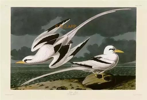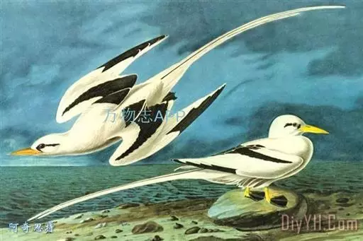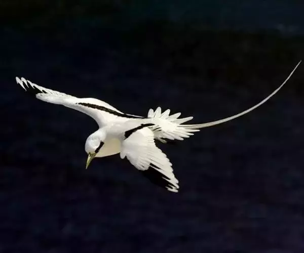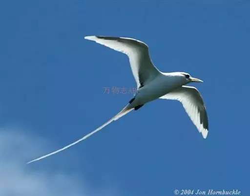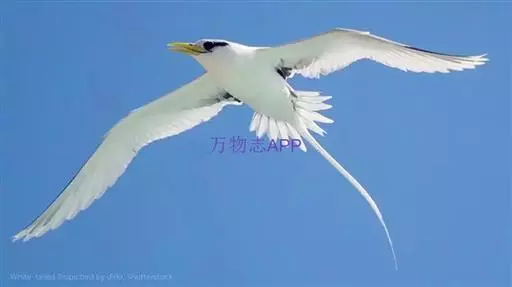 白尾鹲(学名:Phaethon lepturus):体重220-410克;体长370-400毫米,加上延长的尾羽为680-990毫米,是一种中型热带海鸟。全身羽毛主要为白色,繁殖期微缀有橙色。眼前和眼后有粗著的黑色斑,像两条粗黑的眼眉。翅基部和两胁亦有黑色,飞翔时可明显看见翼上两条黑色斜线。中央两枚尾羽特别长,白色。虹膜褐色;嘴橘黄或黄色,经过鼻孔有一条黑线,跗蹠黄色,趾和蹼黑色。