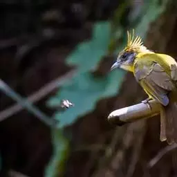 黄腹冠鹎:体长19-24厘米,是一种体型略大的褐色鹎。头顶橄榄褐色具黑褐色羽冠。白色的喉膨起,…
