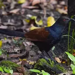 褐翅鸦鹃,是鹃形目鸦鹃科鸦鹃属的鸟类。褐翅鸦鹃的身体为黑色;头颈和胸带蓝紫色金属光泽并具黑亮的羽干纹,…