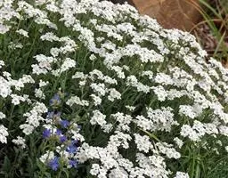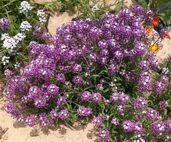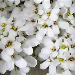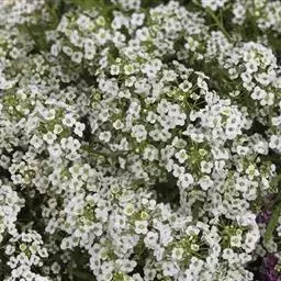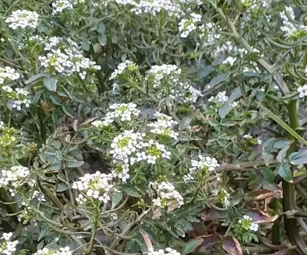 香雪球(学名:Lobularia maritima (Linn.) Desv.)是十字花科、香雪球属多年生草本植物,基部木质化,高可达40厘米,全珠银灰色“丁”字毛,茎自基部向上分枝,叶片条形或披针形,两端渐窄,全缘。花序伞房状,花梗丝状,萼片长圆卵形,内轮的窄椭圆形或窄卵状长圆形;花瓣淡紫色或白色,长圆形,顶端钝圆,短角果椭圆形,果瓣扁压而稍膨胀,果梗末端上翘。种子悬垂于子房室顶,长圆形,淡红褐色,室栽培:3-4月开花,露地栽培的:6-7月开花。