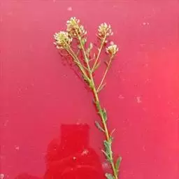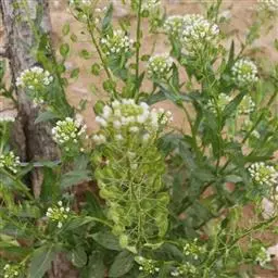 短角果椭圆形,长3-3.5毫米,无毛或在上半部有稀疏“丁”字毛;果瓣扁压而稍膨胀,中脉清楚;胎座框常为淡紫色,隔膜白色,半透明,无脉;果梗长7-15毫米,斜上升或近水平展开,末端上翘。种子每室1粒,悬垂于子房室顶,长圆形,长约1.5毫米,淡红褐色,遇水有胶粘物质。花期温室栽培的3-4月,露地栽培的6-7月。