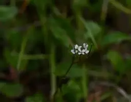 花序伞房状,果期极伸长,花梗丝状,长2-6毫米;萼片长约1.5毫米,外轮的宽于内轮的,外轮的长圆卵形,内轮的窄椭圆形或窄卵状长圆形;花瓣淡紫色或白色,长圆形,长约3毫米,顶端钝圆,基部突然变窄成爪。