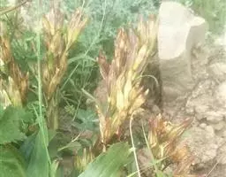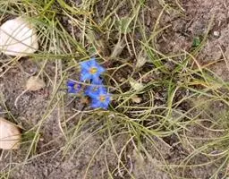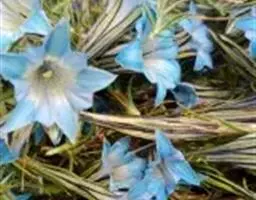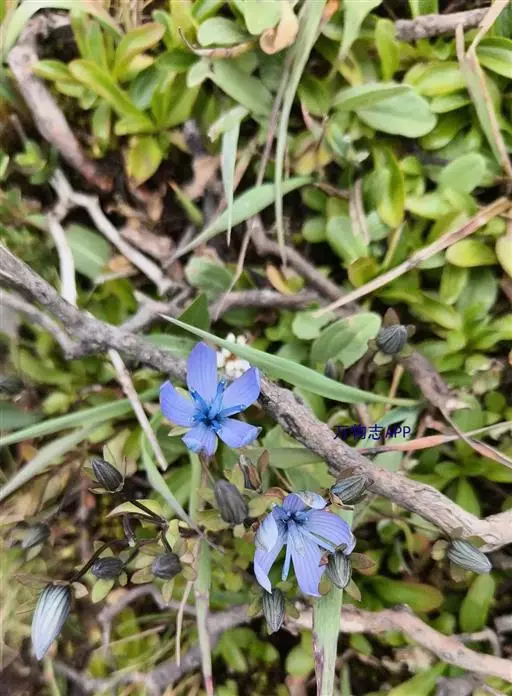 根呈细圆柱形,有多数须根,黄色,断面黄白色。茎具4纵棱,有分枝,节明显,节间长2-7cm,表面黄绿色或紫褐色;质脆,易折断,断面中空。叶多破碎,完整者展平后呈条形或条状披针形,先端尖,基部略抱茎,全缘,下面有一突起的脉纹,绿色。聚伞花序,花具花梗,长2-5cm,具4棱,萼片5,狭条形,先端尖,花冠淡蓝紫色,裂片5,长圆状椭圆形,具7条深色脉纹。蒴果条形,浅棕褐色,先端2裂。气微香,味苦。