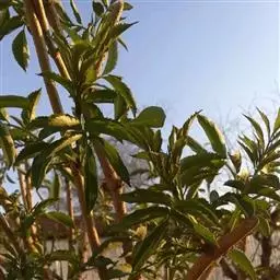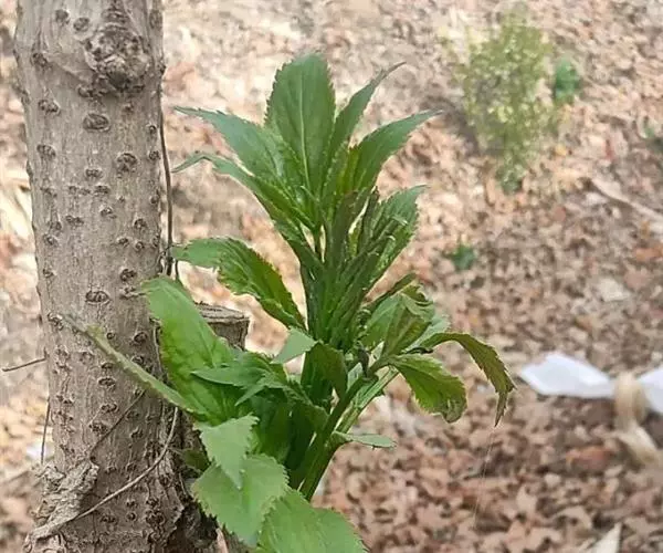 采用育苗移栽法。有2月发芽前,选取生长良好,无病虫害的枝条,剪成20-25cm长的插条,每个留有3个小上芽节,最上和最下面的芽节要距剪口1-1.5cm。然后在整好的地上,开3m宽的畦,按行距26cm开横沟,深16-20cm,每沟放插条15-20根,插条的量上一个芽节要露出地面,然后覆土半沟,压紧,再盖细土与畦而齐平。移栽在当年冬季落叶后或第二年年春季发芽前进行。按行株距各1.3-1.8m开穴,深21-25cm,每穴移苗1株,填土压紧,再盖土使稍高于地面。