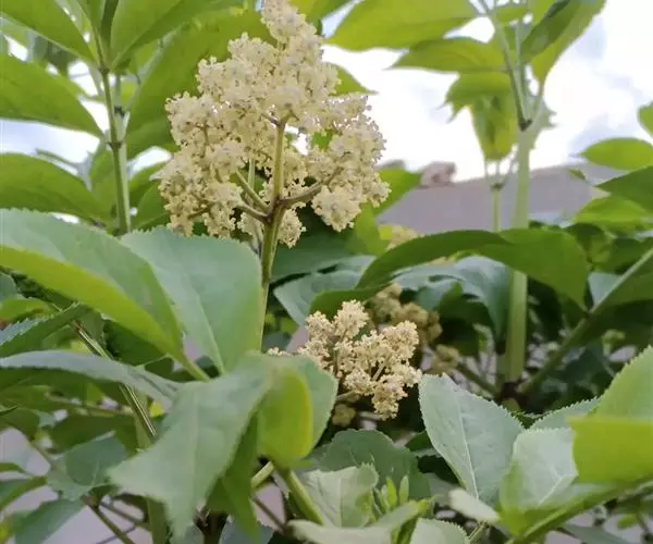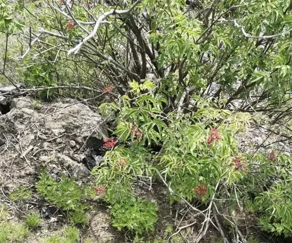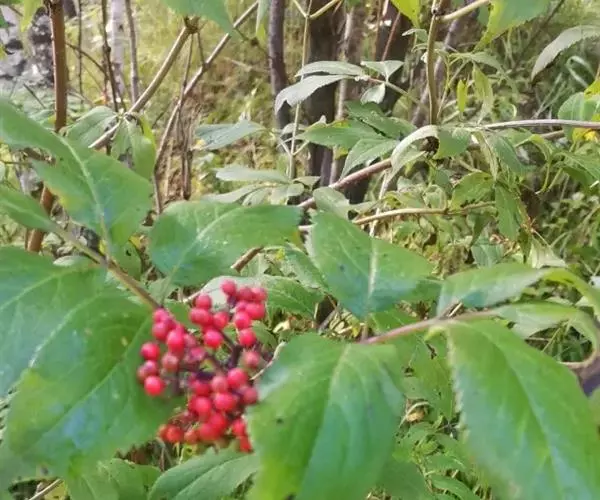 接骨木是落叶灌木或小乔木,高5-6米;老枝淡红褐色,具明显的长椭圆形皮孔,髓部淡褐色。