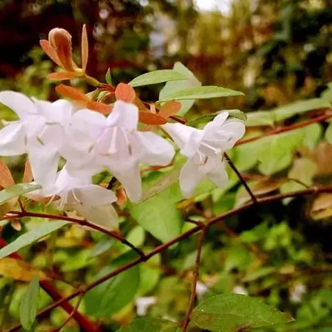 大花六道木,忍冬科六道木属半常绿矮生灌木。其幼枝为红褐色,有短柔毛;叶片倒卵形为墨绿色,…