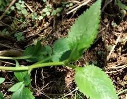 羽状复叶有小叶2-3对,有时仅1对或多达5对,侧生小叶片卵圆形、狭椭圆形至倒矩圆状披针形,长5-15厘米,宽1.2-7厘米,顶端尖、渐尖至尾尖,边缘具不整齐锯齿,有时基部或中部以下具1至数枚腺齿,基部楔形或圆形,有时心形,两侧不对称,最下一对小叶有时具长0.5厘米的柄,顶生小叶卵形或倒卵形,顶端渐尖或尾尖,基部楔形,具长约2厘米的柄,初时小叶上面及中脉被稀疏短柔毛,后光滑无毛,叶搓揉后有臭气;托叶狭带形,或退化成带蓝色的突起。