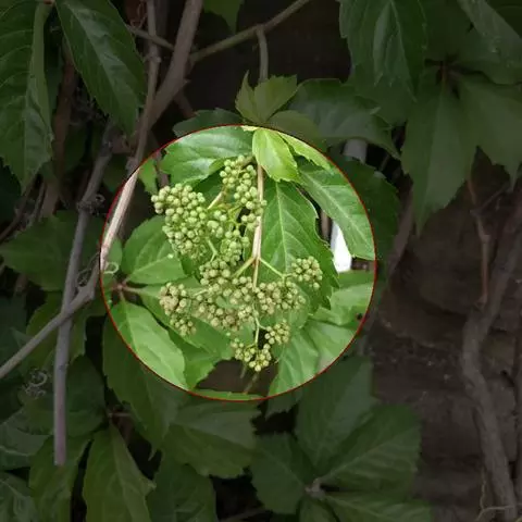 卷须总状5-8分枝,相隔2节间断与叶对生,卷须顶端嫩时膨大呈圆珠形,后遇附着物扩大呈吸盘状。两型叶,着生在短枝上常为3小叶,较小的单叶常着生在长枝上,叶为单叶者叶片卵圆形,长3-7厘米,宽2-5厘米,顶端急尖或渐尖,基部心形或微心形,边缘有4-5个细牙齿,3小叶者,中央小叶长椭圆形,长6-21厘米,宽3-8厘米,最宽处在近中部,顶端渐尖,基部楔形,边缘在中部以上有3-8个细牙齿,侧生小叶卵椭圆形,长5.5-19厘米,宽3-7. 5厘米,最宽处在下部,顶端渐尖,基部极不对称,近圆形,外侧边缘有5-8个细牙齿,内侧边缘锯齿状;单叶有基出脉3-5,中央脉有侧脉2-3对,3小叶者小叶有侧脉5-6对,网脉两面微突出,无毛;叶柄长5-20厘米,中央小叶有短柄,长0.3-1厘米,侧小叶无柄,完全无毛。