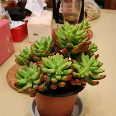 玉缀,别名翡翠景天景天科景天属常绿或半常绿多肉植物。植物匍匐下垂,翠绿色。叶小,多汁,纺锤形,、密…