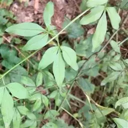 叶互生,复叶,小叶3或5枚,稀7枚,小枝基部常有单叶;叶柄长2-10毫米;叶片和小叶片上面光亮,干时常具横皱纹,两面无毛,稀沿中脉被微柔毛;小叶片卵形、卵状椭圆形至椭圆形,稀倒卵形或近圆形,长0.7-3.5厘米,宽0.5-2厘米,先端急尖,具小尖头,稀钝或圆形,基部楔形或圆形,中脉在上面凹入,下面凸起,侧脉不明显;顶生小叶片常稍大,具小叶柄,长0.2-1.2厘米,侧生小叶片近无柄;单叶通常为宽卵形、椭圆形或近圆形,长1-2.5厘米,宽0.5-2厘米。