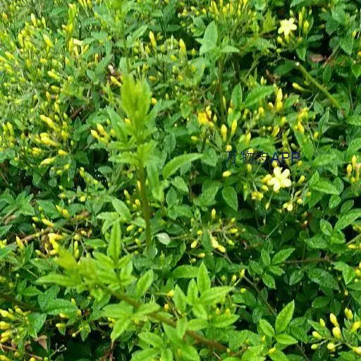 黄素馨(Jasminum floridum Bunge subsp. giraldii (Diels) Miao):与原亚种区别在于本亚种的小枝通常被短柔毛;叶片纸质至薄革质,小叶片较大,长1-4厘米,稀可达5厘米,宽0.5-1.8厘米,上面光滑或疏被短柔毛,下面灰白色,疏被至密被白色长柔毛;花萼疏被短柔毛。花期5-10月,果期8-11月。分布于陕西、湖北西北部及山西、甘肃、河南、四川与陕西交界处的地区。生长于海拔300-1500米的山谷、灌木林中。