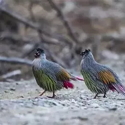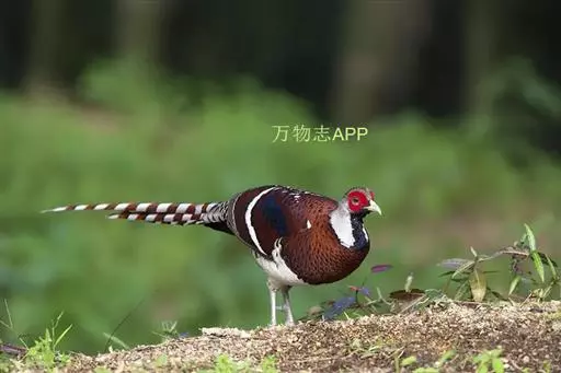 白颈长尾雉(学名:Syrmaticus ellioti):大型鸡类,体长81厘米,体型大小和雉鸡相似。雄鸟头灰褐色,颈白色,脸鲜红色,其上后缘有一显著白纹,上背、胸和两翅栗色,上背和翅上均具1条宽阔的白色带,极为醒目;下背和腰黑色而具白斑;腹白色,尾灰色而具宽阔栗斑。雌鸟体羽大都棕褐色,上体满杂以黑色斑,背具白色矢状斑;喉和前颈黑色,腹棕白色,外侧尾羽大都栗色。