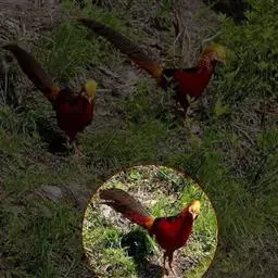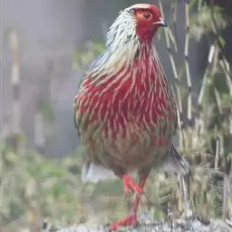血雉雉科血雉属鸟类,别名血鸡、松花鸡,血雉的雄鸟大覆羽、尾下覆羽、尾上覆羽、脚、头侧、腊膜为红色,…