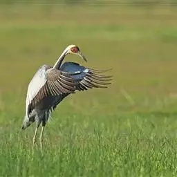 东非冕鹤是大型涉禽。体长127厘米。额部向外凸出,有乌黑色绒羽,…