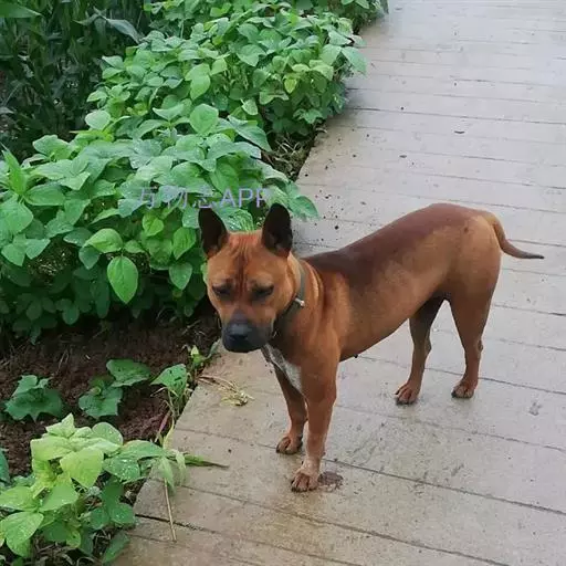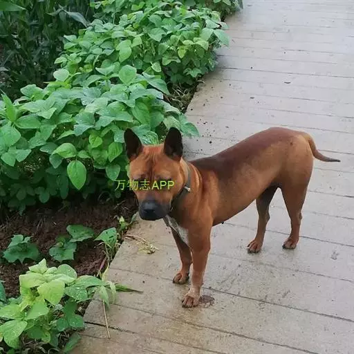 该犬体型属犬类之中等,成年犬小则几公斤,大则 30 公斤,肩高与身长比例约 1:1,毛色棕红、两耳直坚、尾如春笋直立、行动机灵敏捷、双目炯炯有神。该犬头大、嘴宽、多皱褶、两耳竖直、上唇下垂约 1cm,鼻吻较短,整个面部给人以威严多思与丑陋之感。头顶至嘴呈倒梯形、嘴型方正、头型比例为:耳前方至眼睛距离与眼睛至嘴前端约 3:2,颈部粗壮有力。