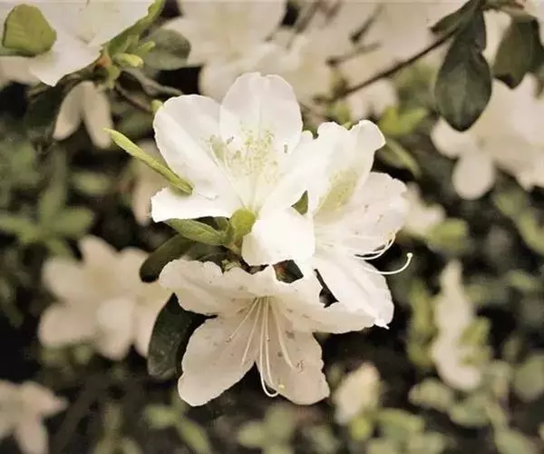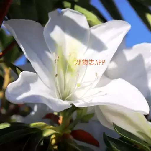 白花杜鹃(学名:Rhododendron mucronatum (Blume) G. Don ):半常绿灌木,高1-2米;幼枝开展,分枝多。叶纸质,披针形至卵状披针形或长圆状披针形,上面深绿色,混生短腺毛。伞形花序顶生,具花1-3朵;花冠白色,有时淡红色,阔漏斗形。蒴果圆锥状卵球形,长约1厘米。花期4-5月,果期6-7月。