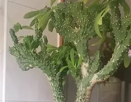 小乔木,高2~6米,直径10~25厘米,老时呈灰色或淡灰色,幼时绿色,上部平展或分枝;小枝肉质光棍…