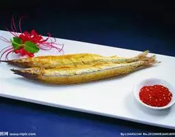 干烧小黄鱼 是由黄鱼等制作的食物,配料是葱、姜、蒜。