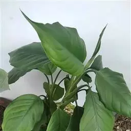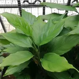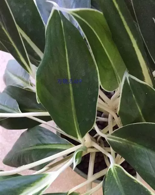 粗肋草学名:Aglanonema spp. 别名:广东万年青、万年青 性状描述:多年生草本;茎直立,不分枝;叶形多变,从披针形、长椭圆形乃至卵形,中肋两边。