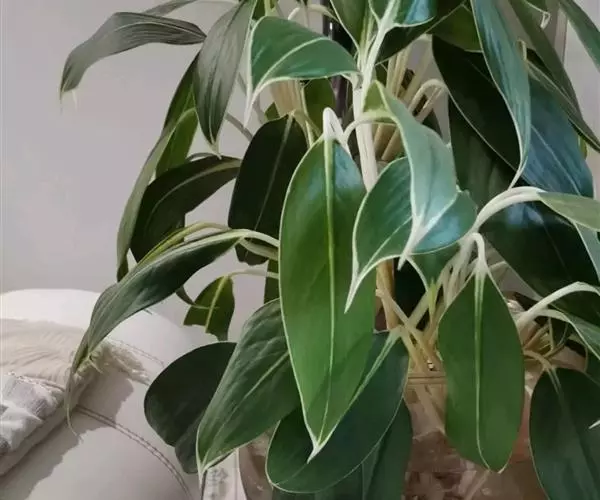 天南星科,原产于热带亚洲。多年生草本观叶植物。原产于马来西亚。茎直立,不分枝。株高约30~50公分,叶披针形或长椭圆形,叶面随品种而变化,革质肉厚,常有不同的银色或白色斑镶嵌,成株能开花。植物株形不高,耐阴性强,四季常绿,为优良之室内观叶植物。中肋两边常不等大,叶色暗绿,并散生灰色、乳白色或黄色.