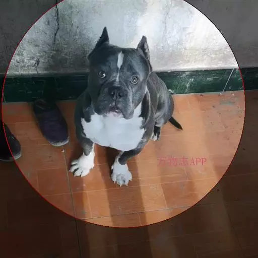 从上向下俯视美国恶霸犬的头部,是一个非常接近圆形的椭圆形,这更加说明他宽阔的头盖骨是它一个明显的头部特征。