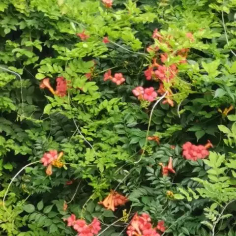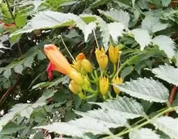 厚萼凌霄 Seem.)是紫葳科凌霄属植物,藤本,具气生根,长达10米。小叶9-11枚,…