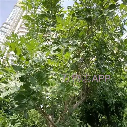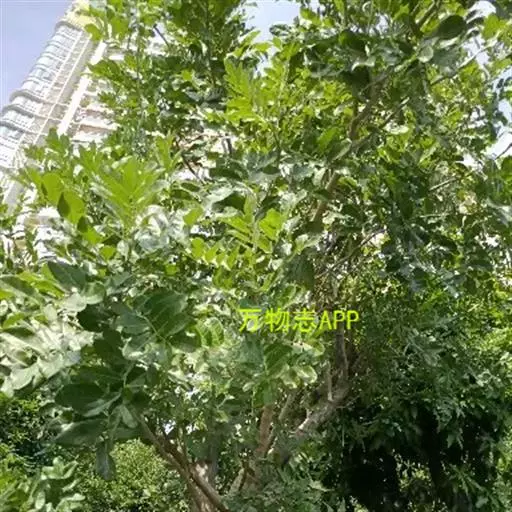 常绿乔木,高10-15米,枝下高约2米,胸径约1米。奇数羽状复叶交互对生或轮生,叶轴长7.5-15厘米;小叶7-9枚,长圆形或倒卵形,顶端急尖,基部楔形,全缘,叶面光滑,亮绿色,背面淡绿色,被微柔毛,近革质,羽状脉明显。
