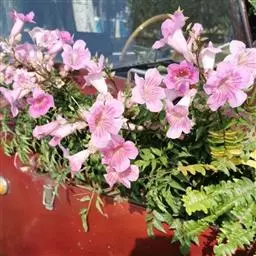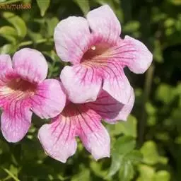 粉花凌霄 K.Schum.)是紫葳科魔盒凌霄属的落叶藤本植物。奇数羽状复叶对生,小叶全缘,…